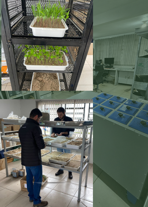 O laboratório interno garante a qualidade das sementes por meio de testes que avaliam sua viabilidade e rendimento, orientando decisões sobre beneficiamento, recebimento e armazenamento.